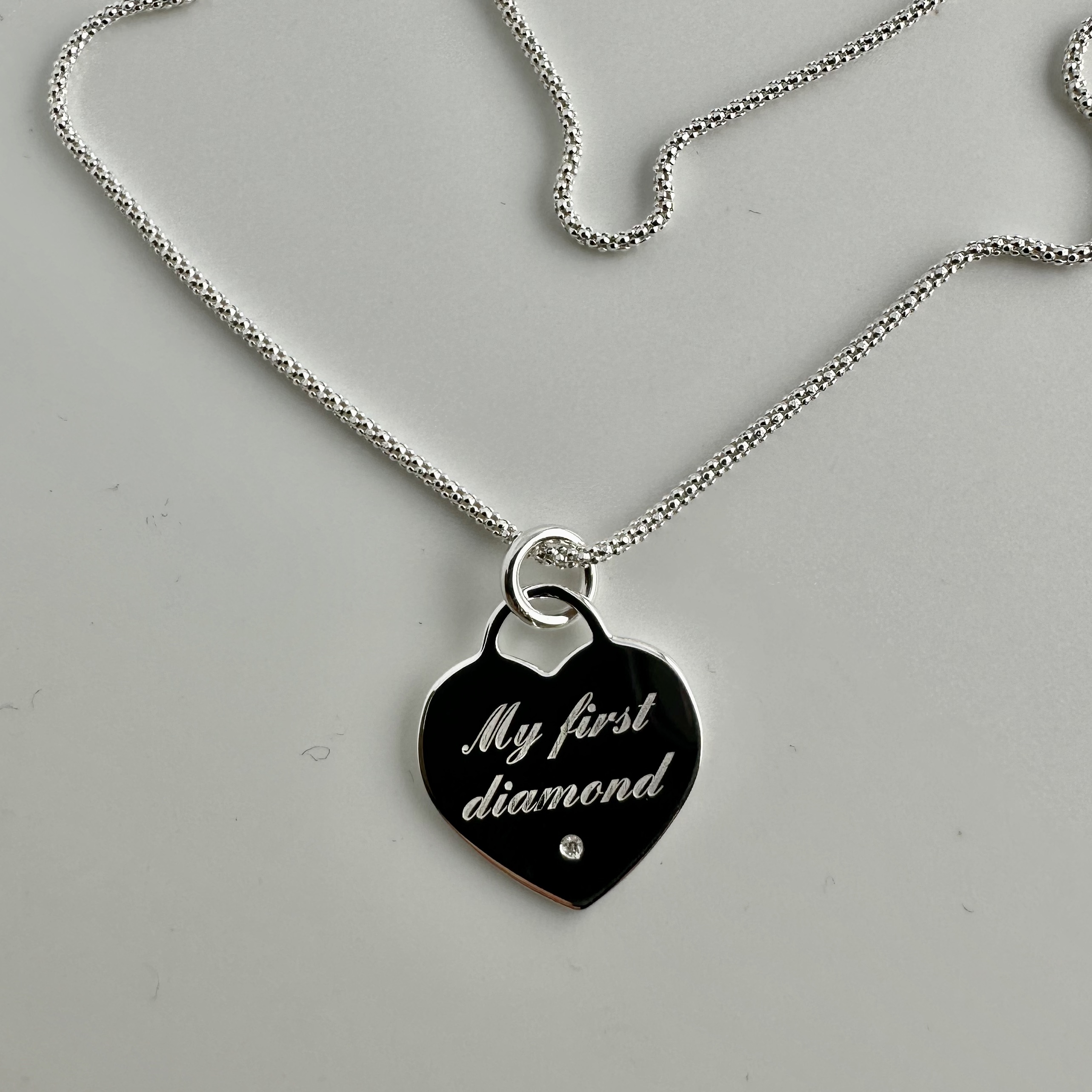 Takaisin 'My First Diamond' -kaulakoru EK101/pituus 45cm, oikea timantti. Kpl Lisää tuotelistaan Edellinen artikkeli: Rodinoitu solmukaulakoru - Kullattu solmu, pituus 45cm - Rodinoitu hopea - 35H124 Edellinen Seuraava artikkeli: Eteenpäin levenevä rosettakaulaketju - EK179-180/pituus 45 ja 50cm. Alkaen hinta - Hopea - 35H191 Seuraava