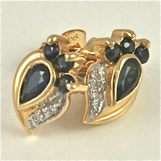 Keltakultaiset korvakorut timanteilla ja safiireilla