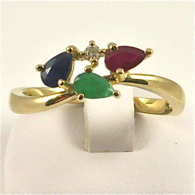 Rubiini-smaragdi-safiiri -timanttisormus