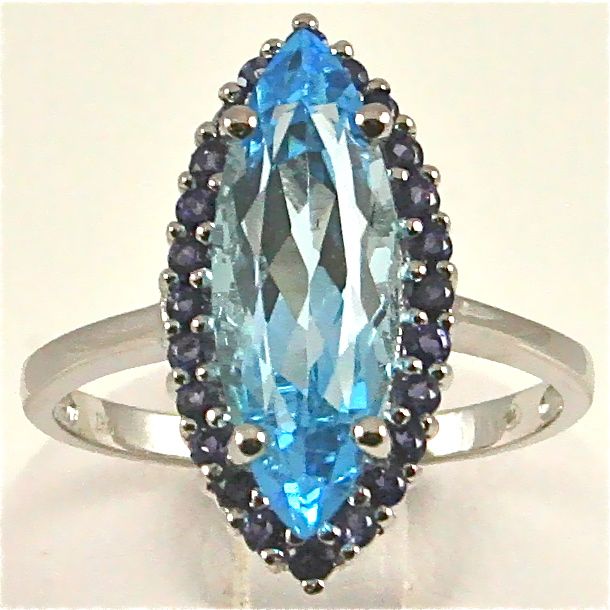 Topaasisormus markiisi-hiotulla topaasilla ja ioliiteilla