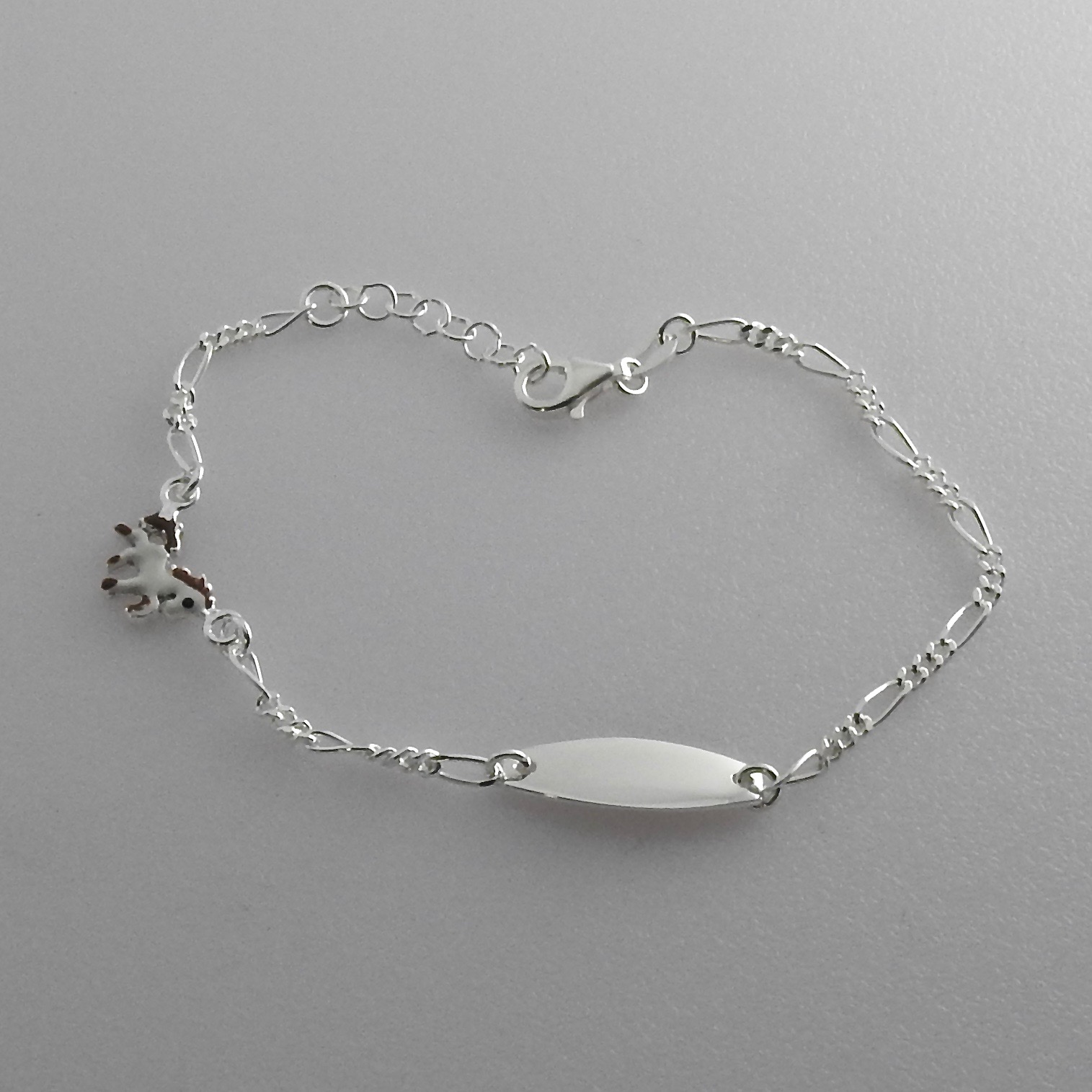 Takaisin Lasten laattaranneketju emaloidulla hepalla R236 / 16 + 2 cm Kpl Lisää tuotelistaan Edellinen artikkeli: King-ranneketju - R175 / pituus 19cm, leveys 7,3mm - Hopea - 36H138 Edellinen Seuraava artikkeli: Timanttileikattu ranneketju - R183 / 18,5 cm. - Hopea - 36H366 Seuraava