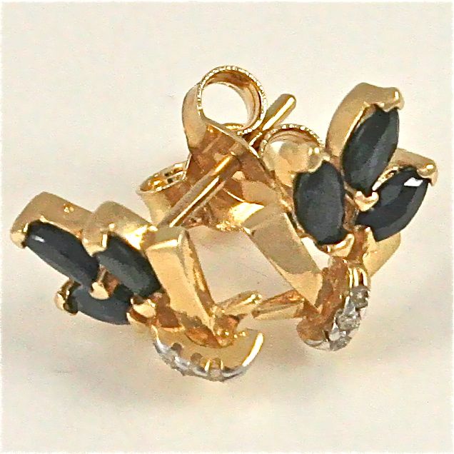 Keltakultaiset korvakorut timanteilla ja safiireilla