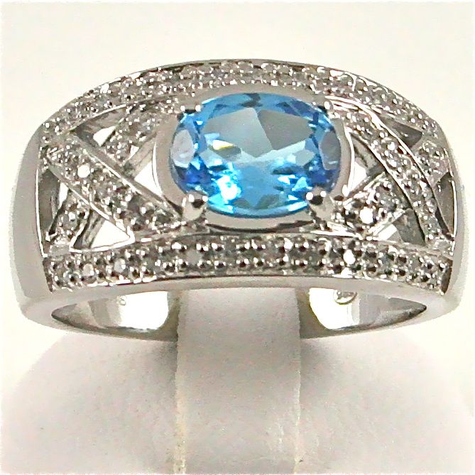 Valkokultainen topaasi-timantti -sormus, koko 18